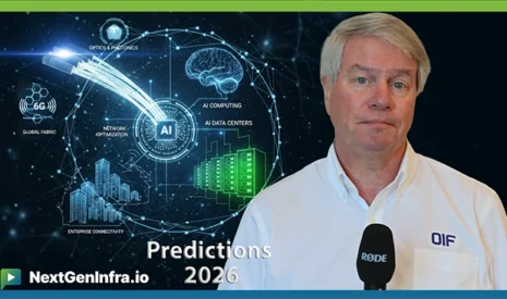 Nathan Tracy, President of OIF, discusses 2026 predictions focusing on the industry’s push toward 400/448 Gbps implementation while addressing reliability, power efficiency, and reach challenges, with particular emphasis on coherent lite market development and CMIS as critical firmware infrastructure for AI applications.